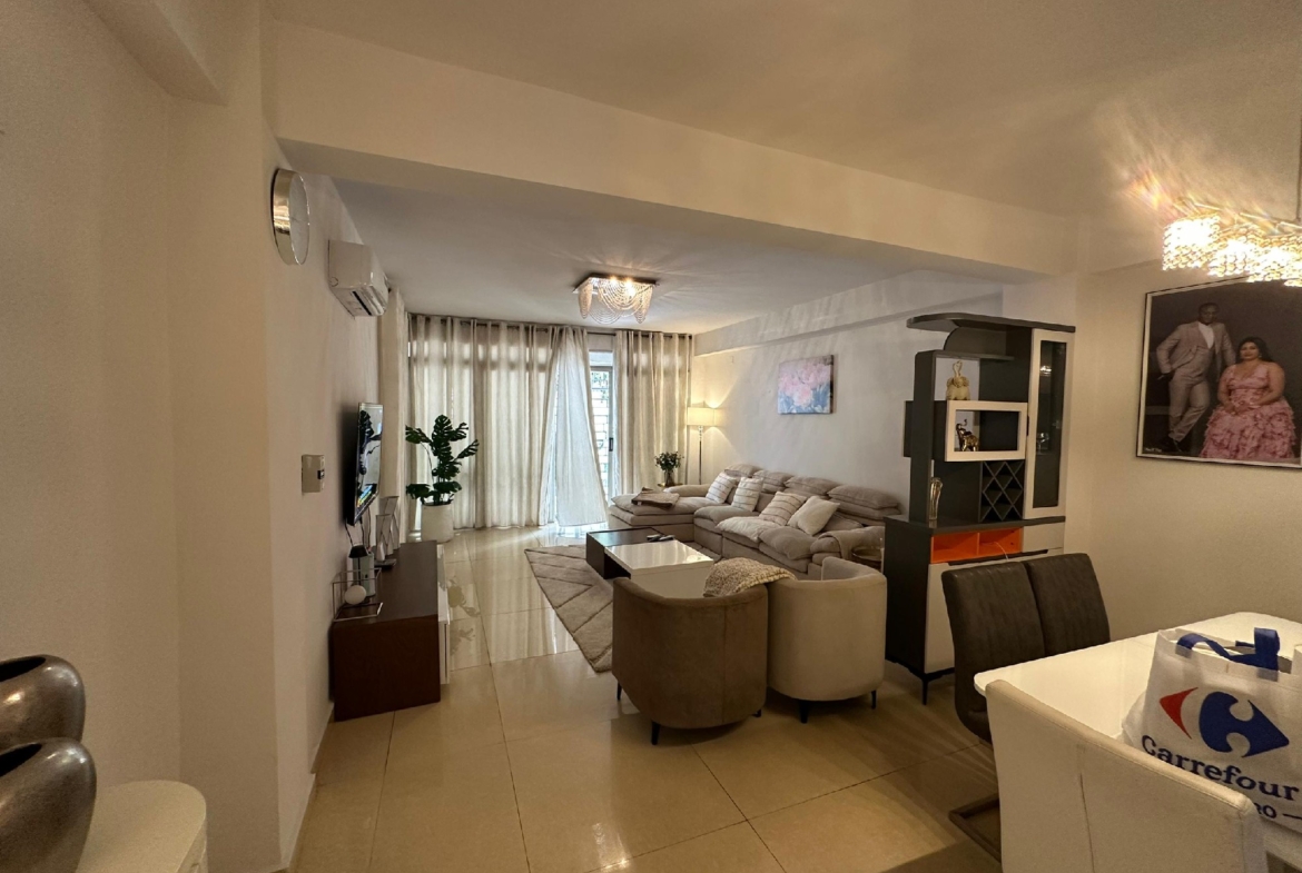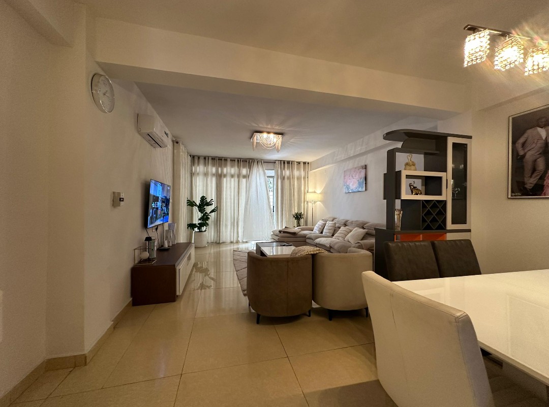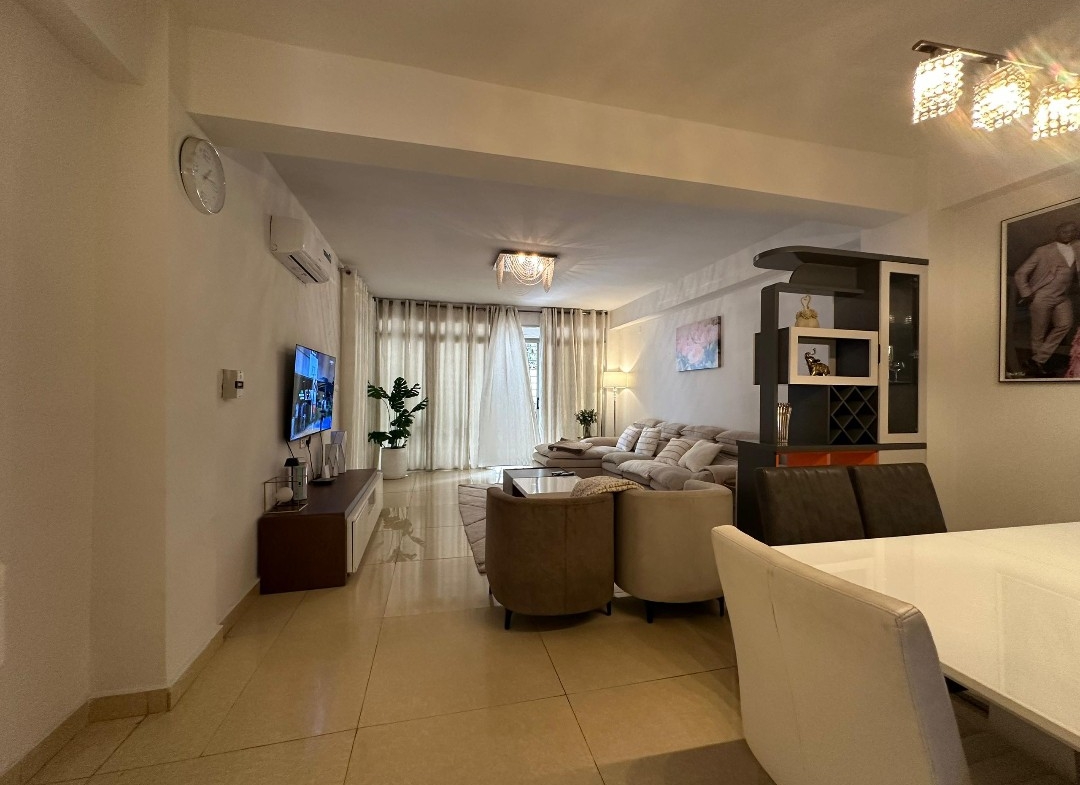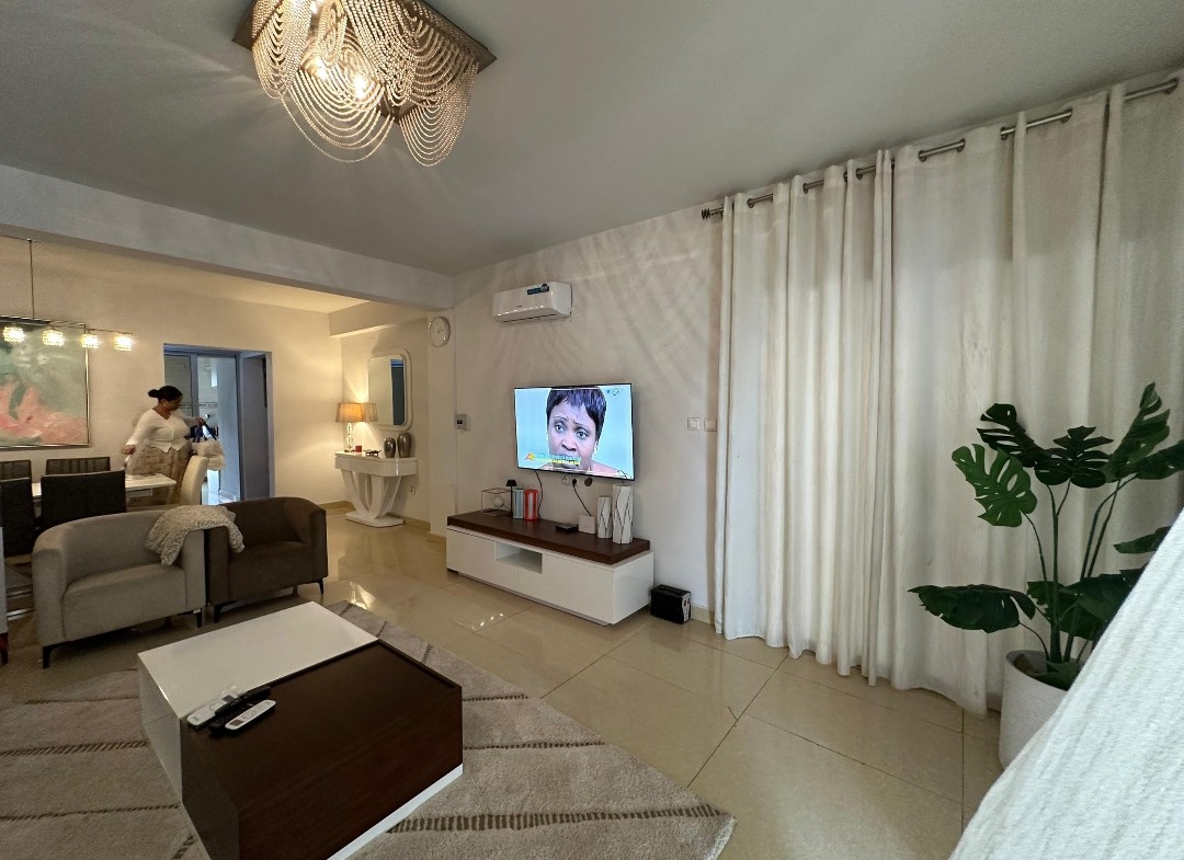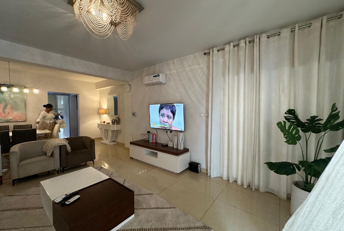 Il se compose de trois chambres spacieuses et lumineuses, d’un salon généreux avec salle à manger, d’une cuisine entièrement équipée avec un magasin, ainsi que de trois salles de bains et une toilette visiteurs. Profitez d’un environnement sécurisé avec un courant de départ unique, un groupe électrogène pour une alimentation continue et un parking pouvant accueillir deux véhicules.