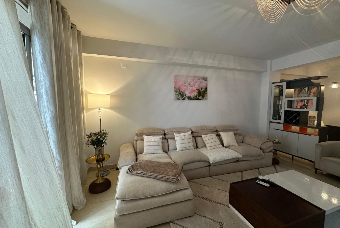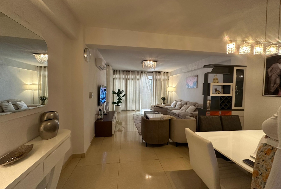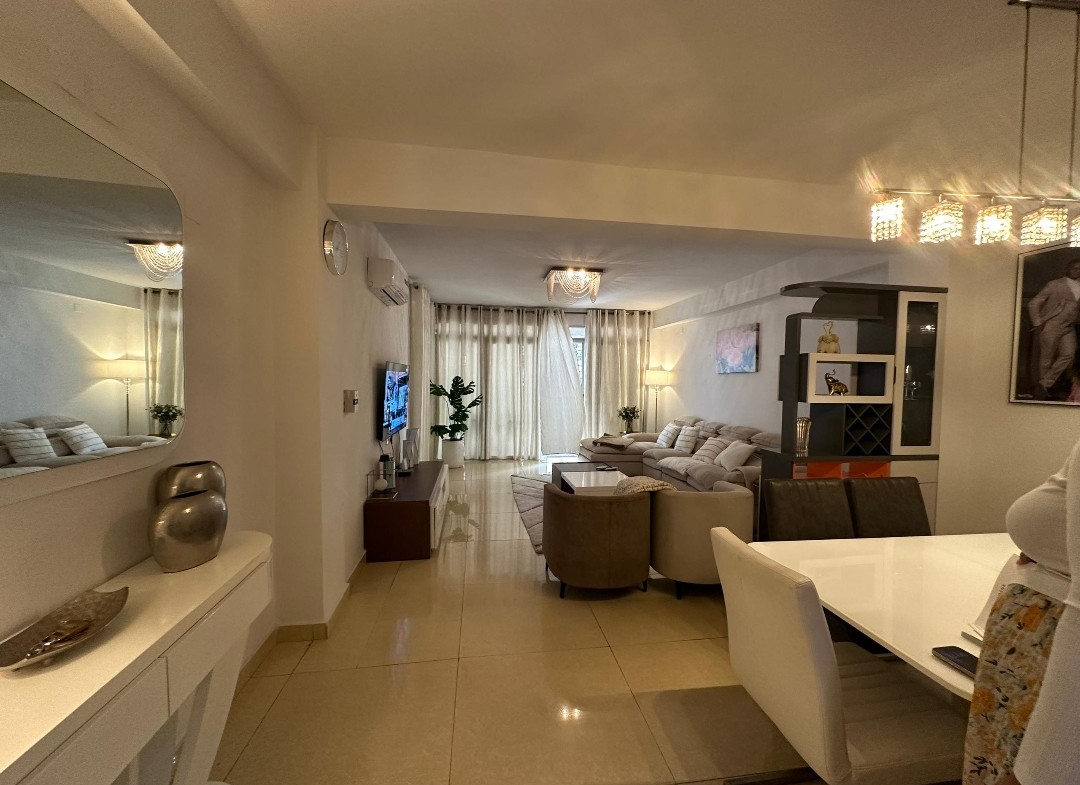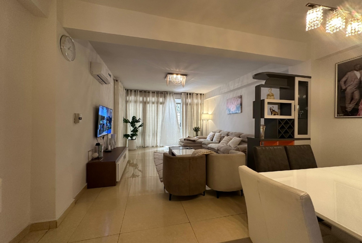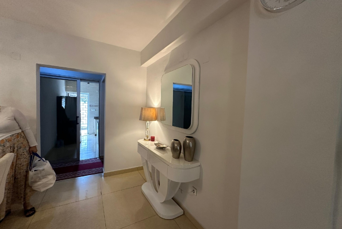 Il se compose de trois chambres spacieuses et lumineuses, d’un salon généreux avec salle à manger, d’une cuisine entièrement équipée avec un magasin, ainsi que de trois salles de bains et une toilette visiteurs. Profitez d’un environnement sécurisé avec un courant de départ unique, un groupe électrogène pour une alimentation continue et un parking pouvant accueillir deux véhicules.