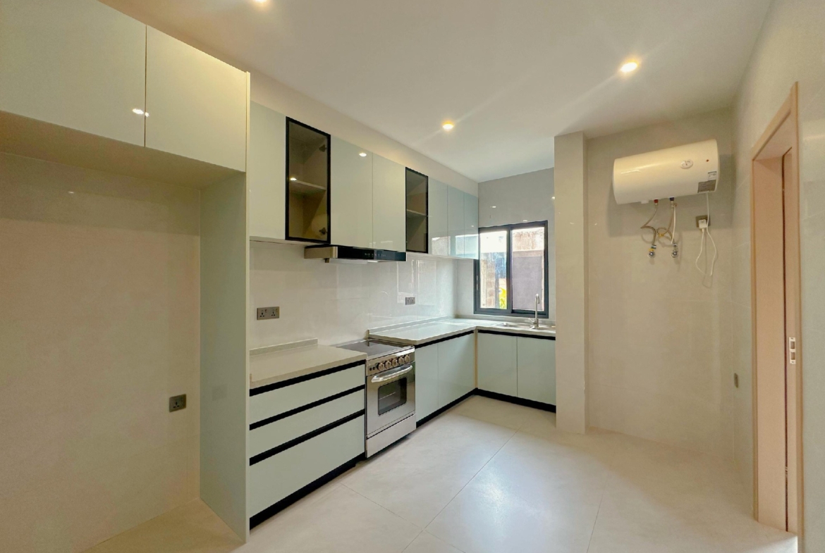 Ce bien d’exception se compose de trois chambres spacieuses et autonomes, dont une chambre principale avec dressing intégré. Il offre également un bureau fonctionnel, un salon lumineux et spacieux, une salle à manger élégante et une cuisine entièrement équipée avec un espace de rangement pratique. Une toilette pour visiteurs est également présente.