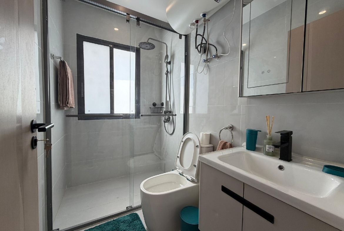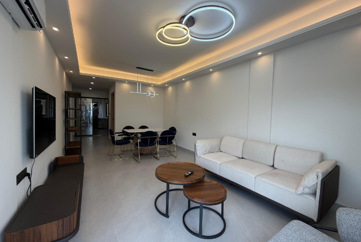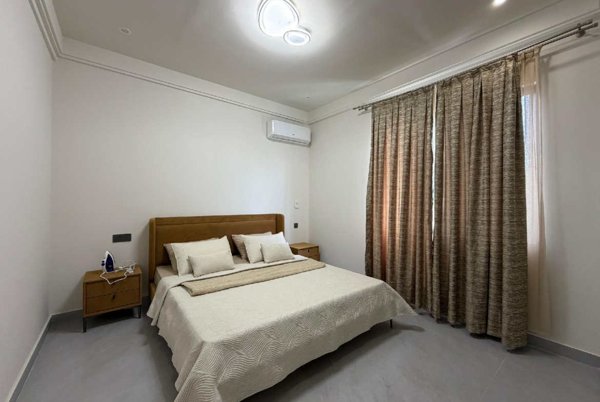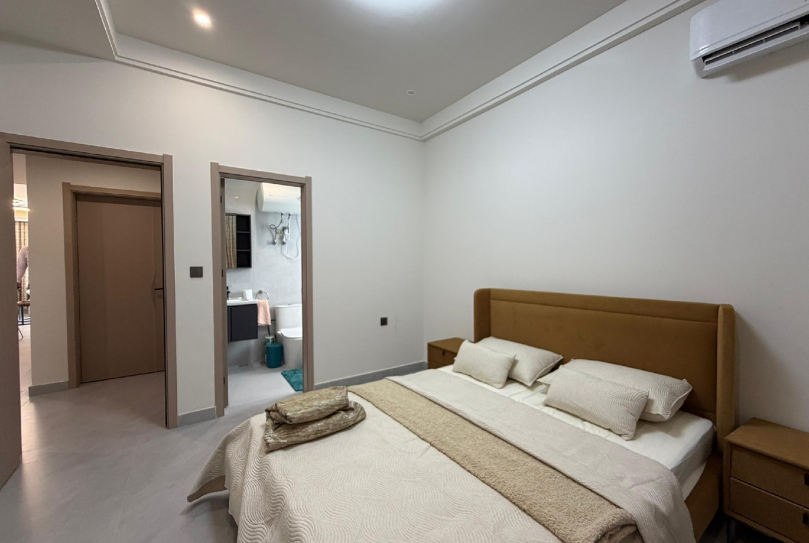 Cet appartement se compose de 2 chambres climatisées, chacune bénéficiant de sa propre salle de bain privative, complétées par une toilette visiteurs pour un confort optimal. La cuisine est entièrement équipée, prête à accueillir vos talents culinaires. Le vaste salon s’ouvre sur un grand balcon, offrant un espace de détente agréable. Profitez d’un système de climatisation (split) installé dans toutes les pièces pour un confort thermique idéal.
