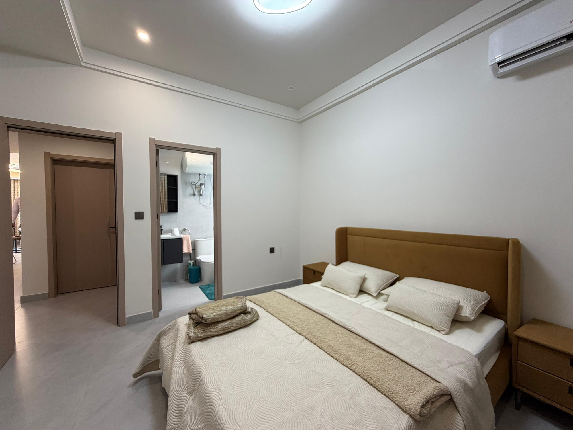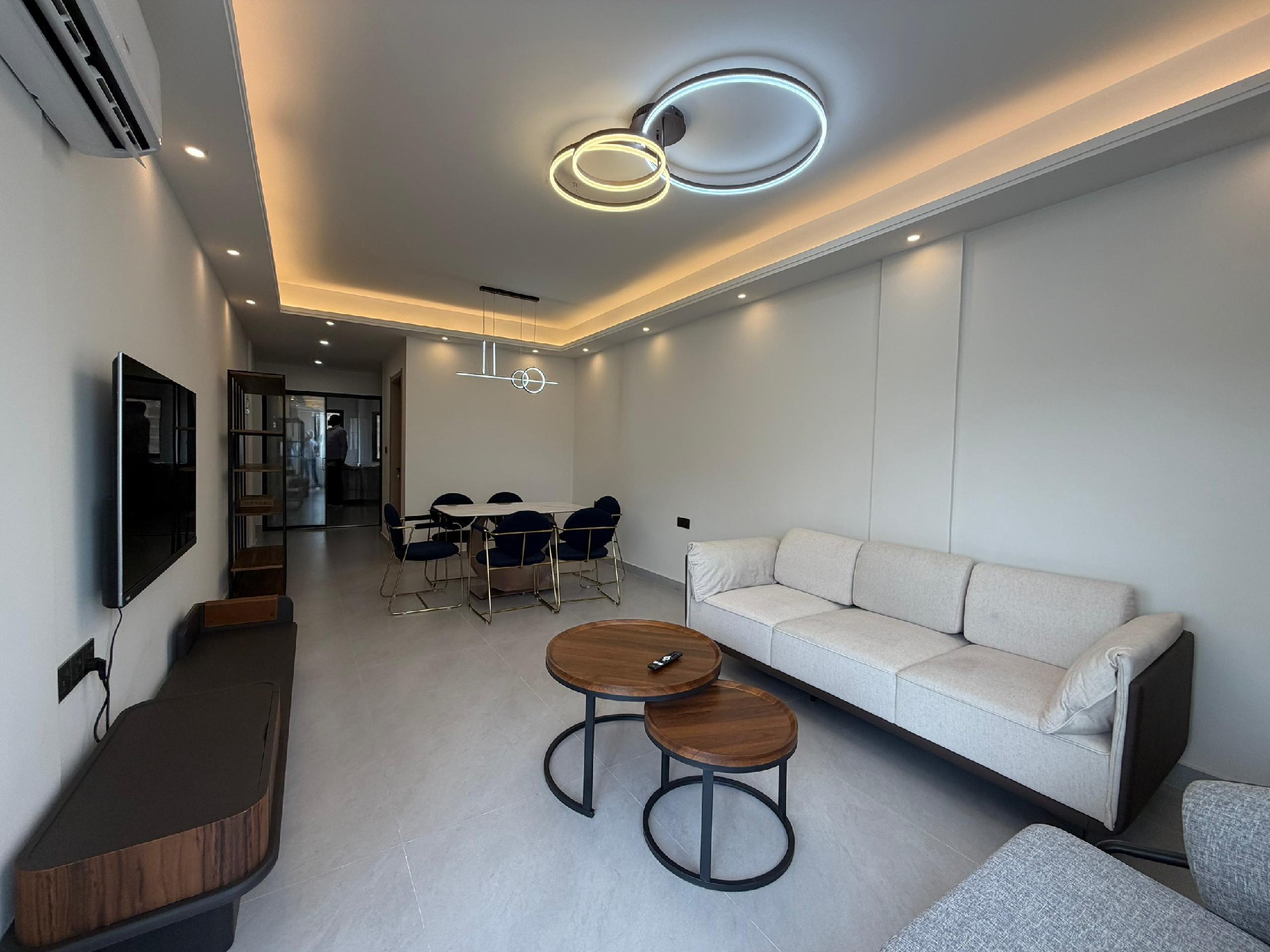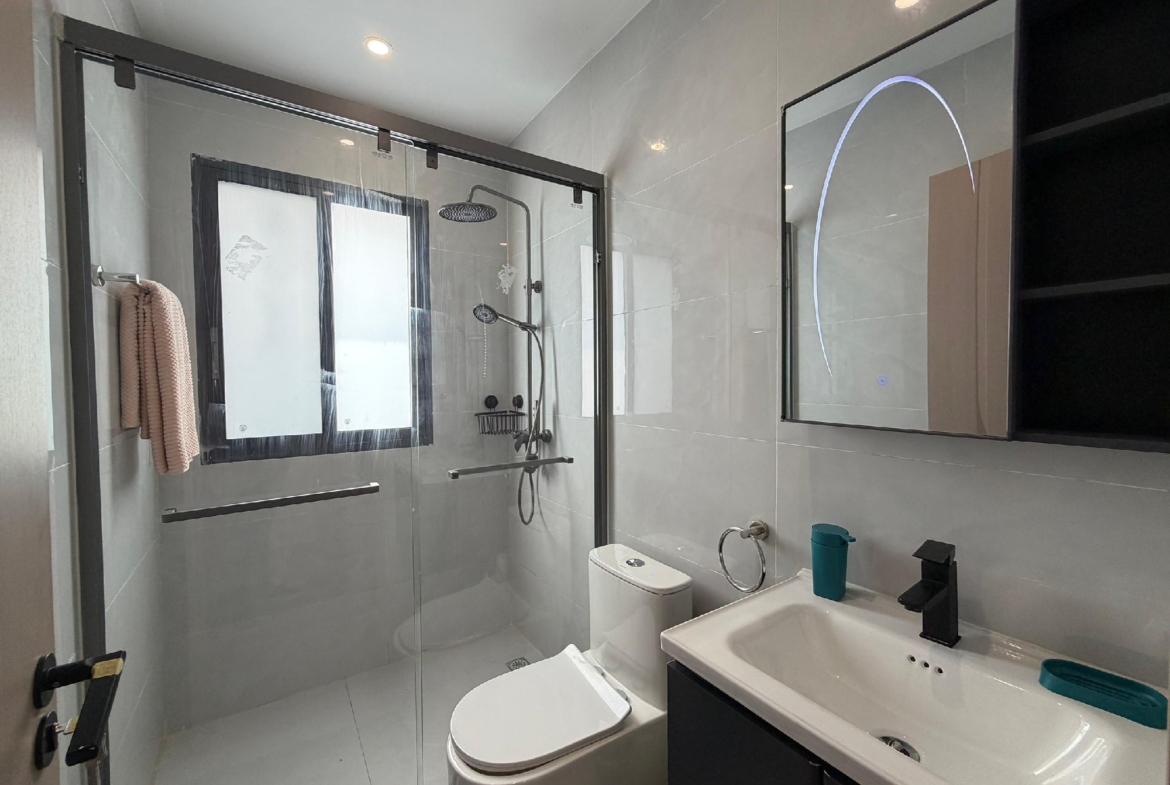 Cet appartement se compose de 2 chambres climatisées, chacune bénéficiant de sa propre salle de bain privative, complétées par une toilette visiteurs pour un confort optimal. La cuisine est entièrement équipée, prête à accueillir vos talents culinaires. Le vaste salon s’ouvre sur un grand balcon, offrant un espace de détente agréable. Profitez d’un système de climatisation (split) installé dans toutes les pièces pour un confort thermique idéal.