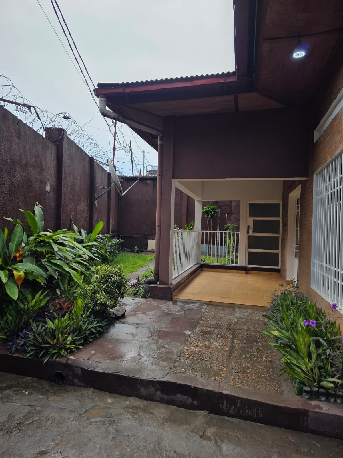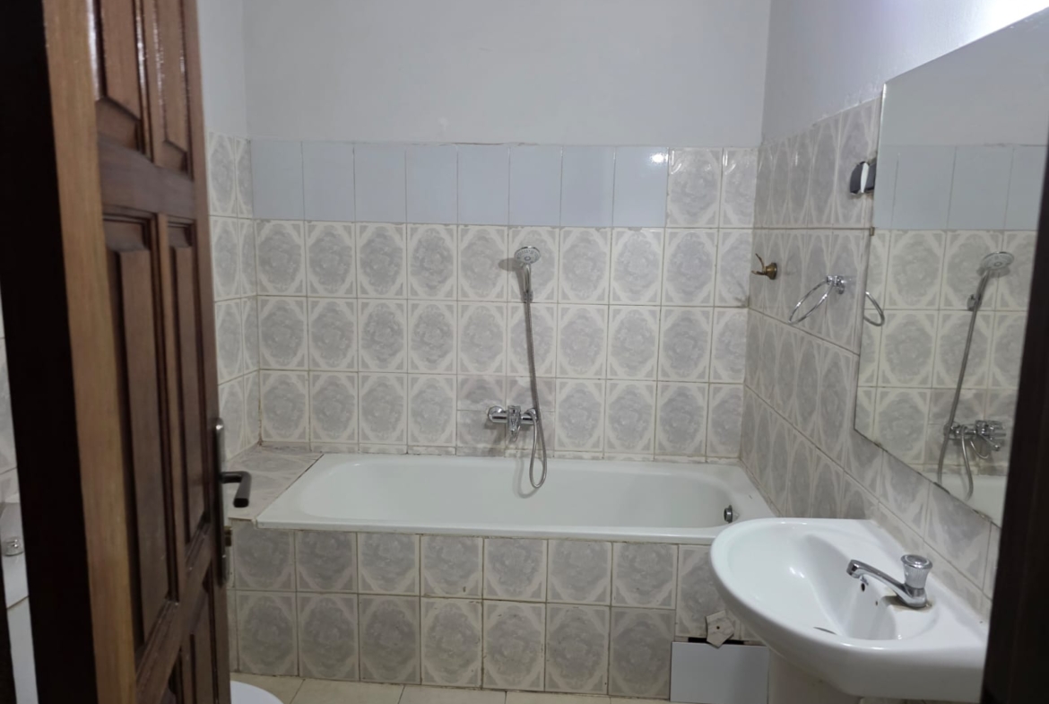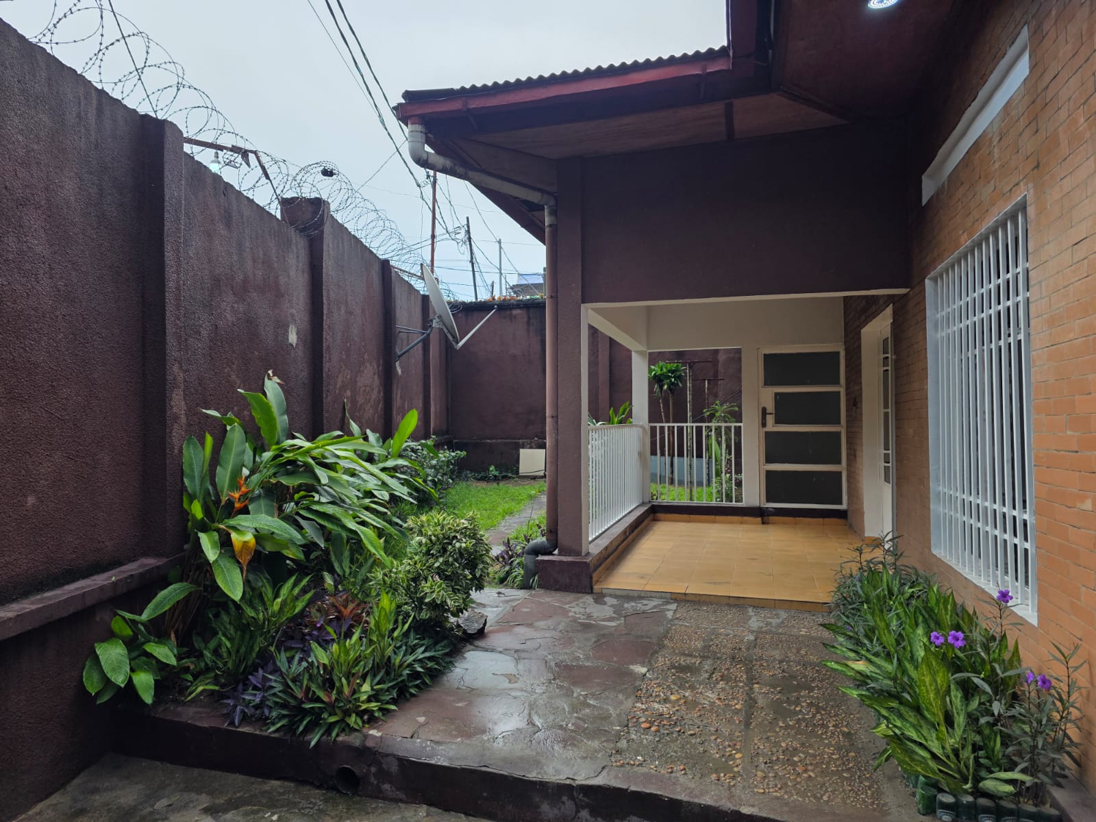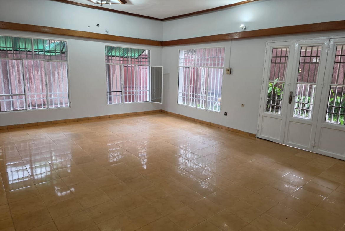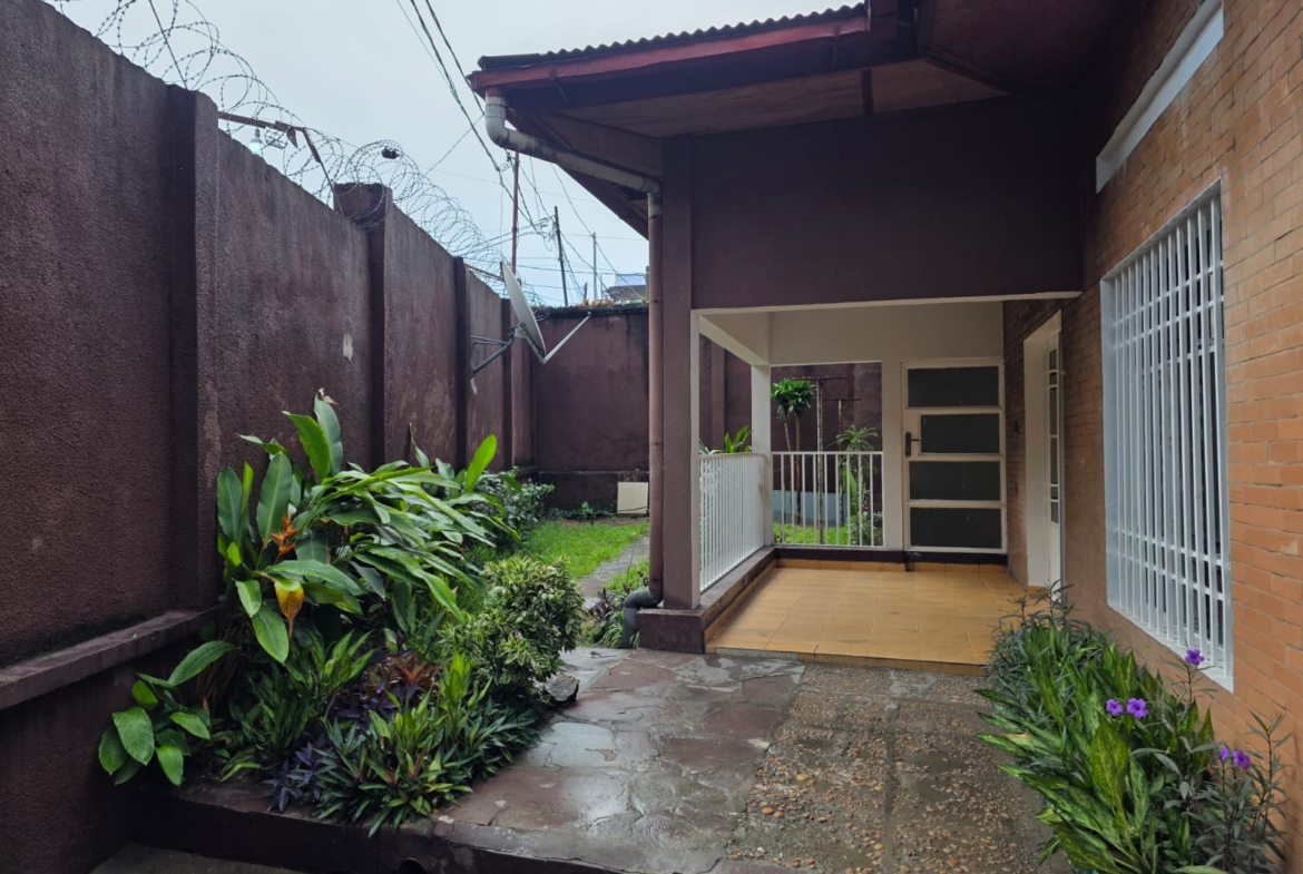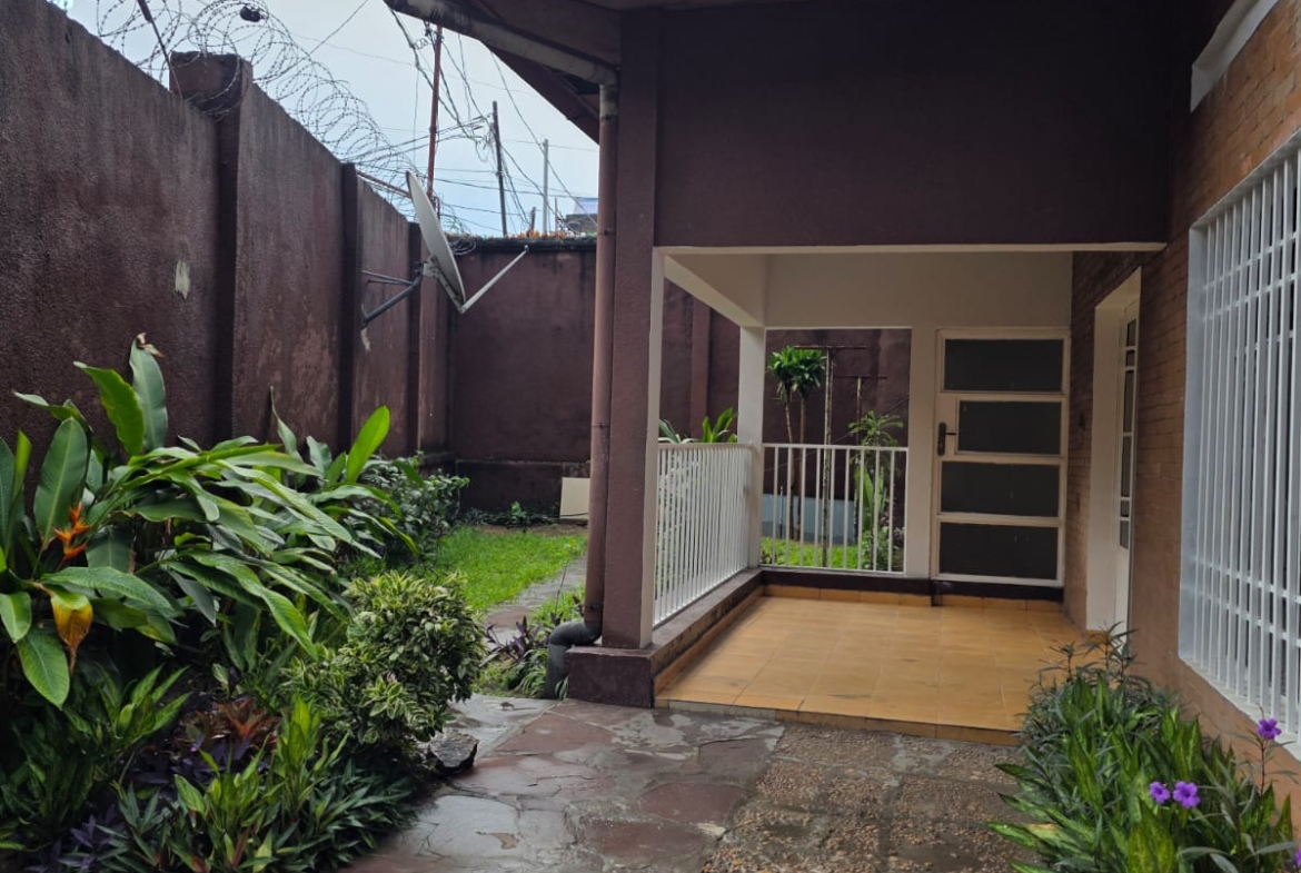 Maison-Villa de 4 chambres à coucher, 1 grand salon/salle à manger, 2 salles de bain, cuisine agencée, magasin, et 2 places de parc intérieur, avec terrasse et jardin. Logement équipé : cuisine agencée, électricité, eau courante grâce à une citerne de 1’000 litres, bonne sécurité, muraille renforcée.
