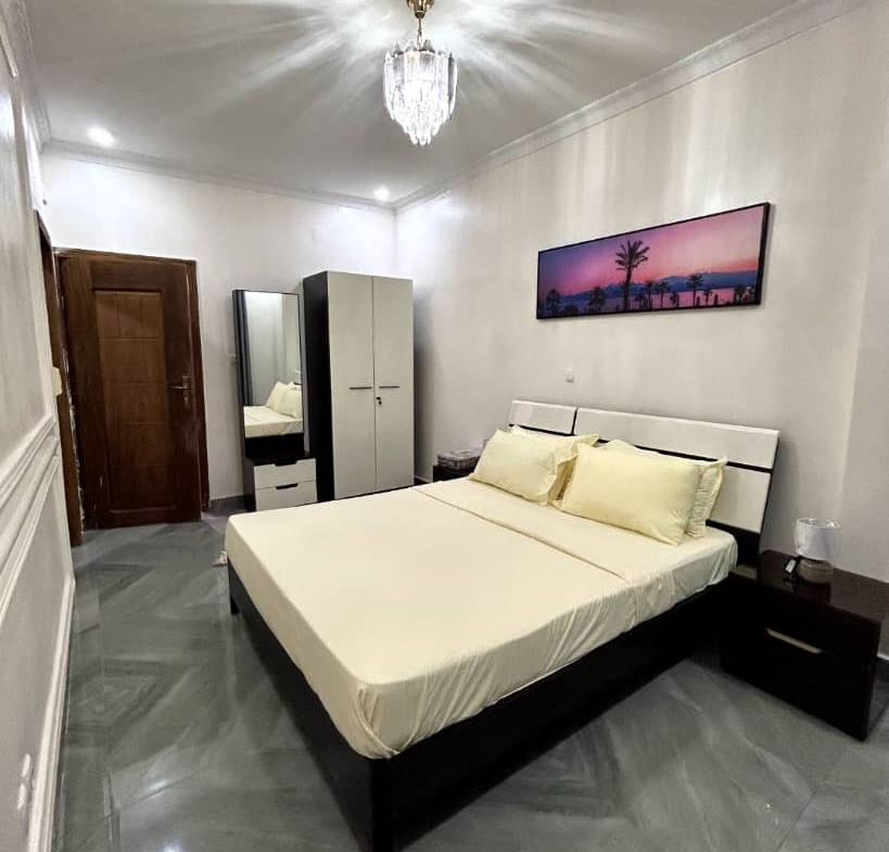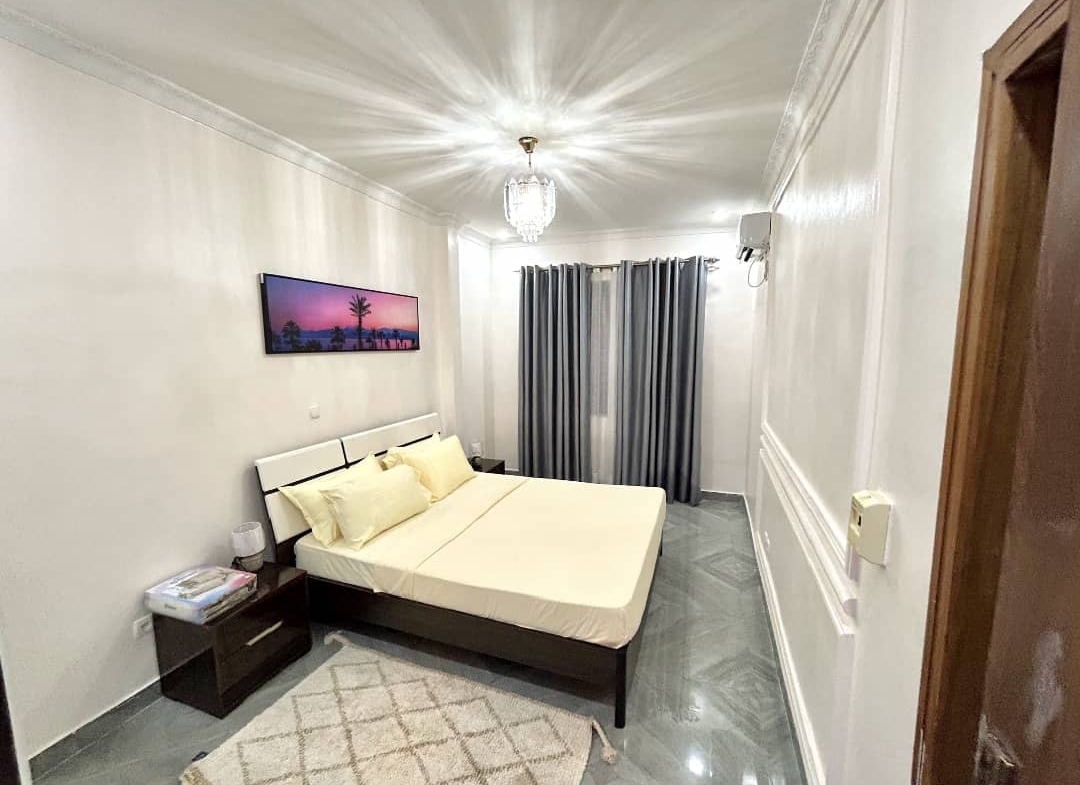 Magnifique appartement meublé nouvellement construit très très propre à kintambo composé d’une grande chambre climatisée, salon climatisé, cuisine américaine équipée, salle de bain, une grande véranda à 80$ la nuitée