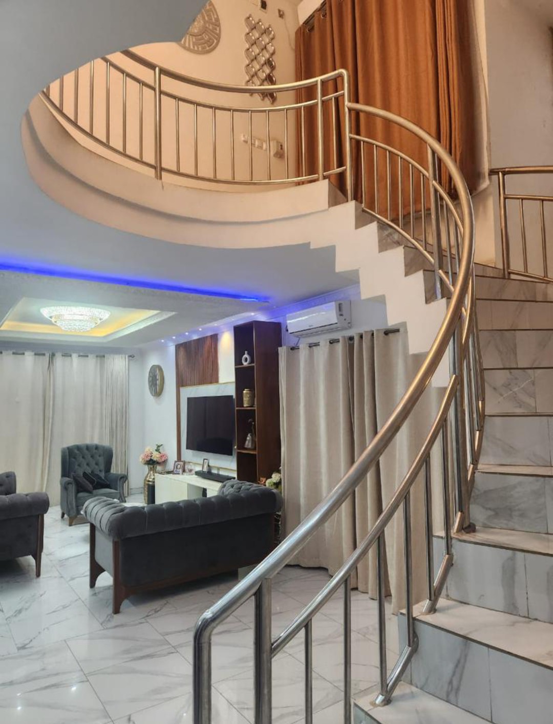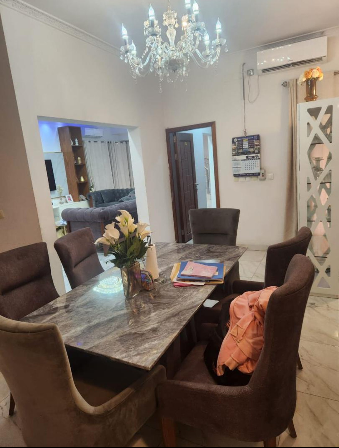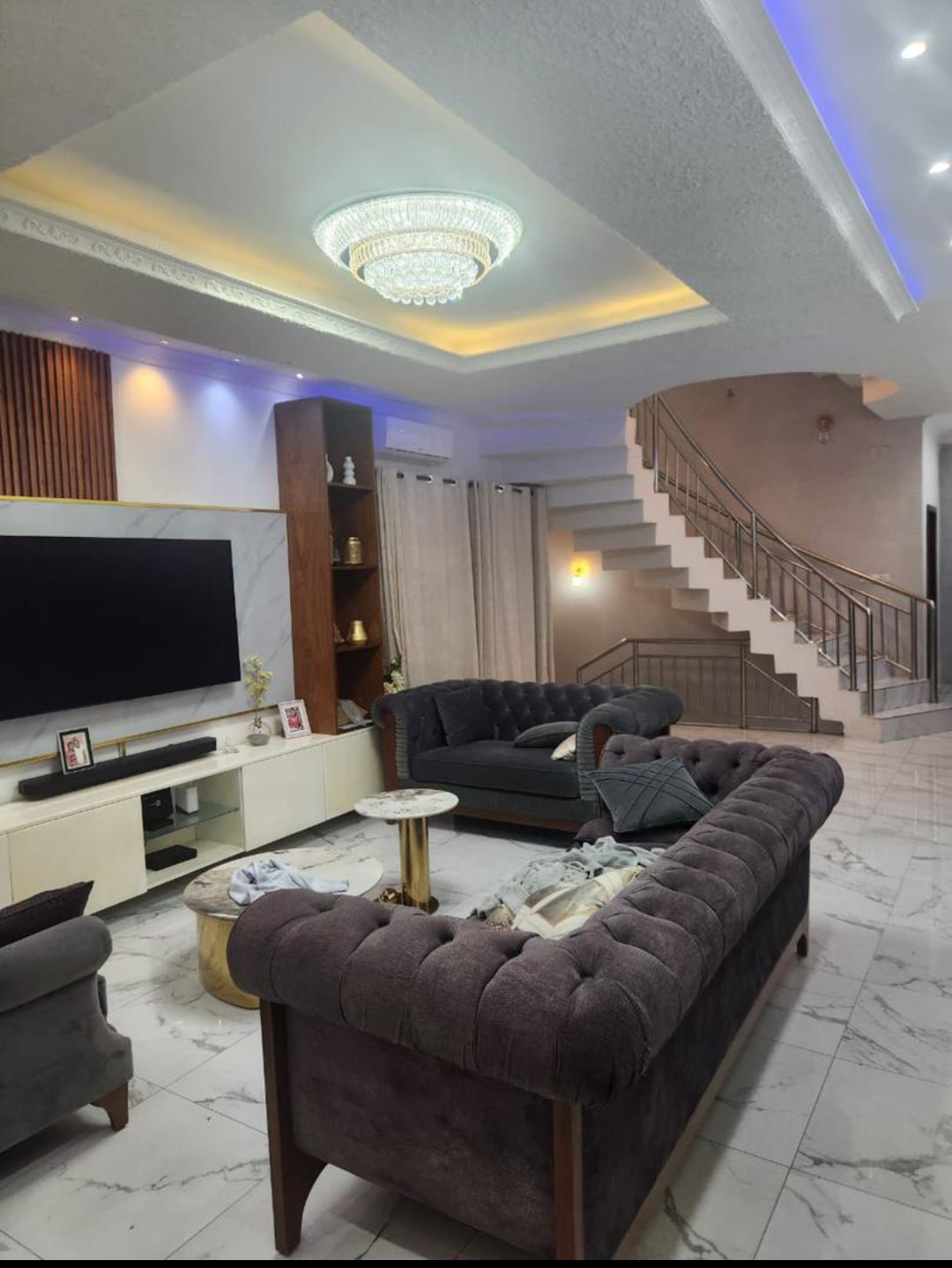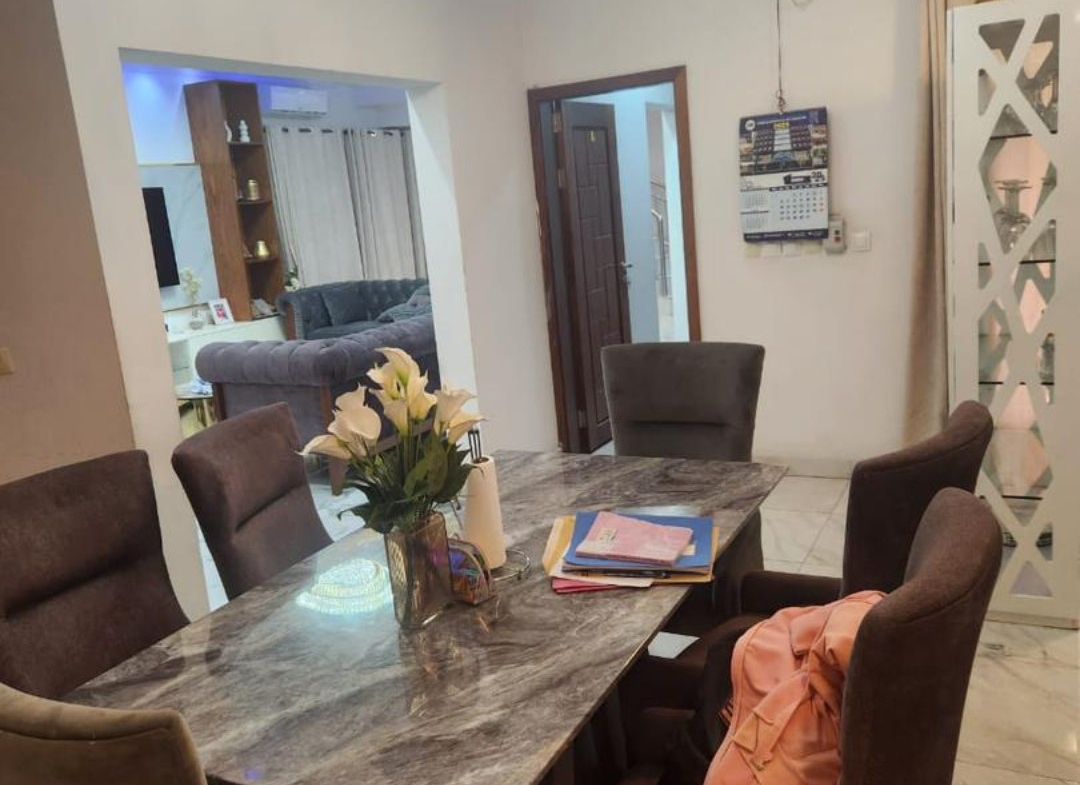 dotée de: 4 chambres spacieuse lumineuse salon spacieux lumineux salle a manger cuisine équipé magasin 3 salle de bains toilettes de visiteurs, parking climatisé partout