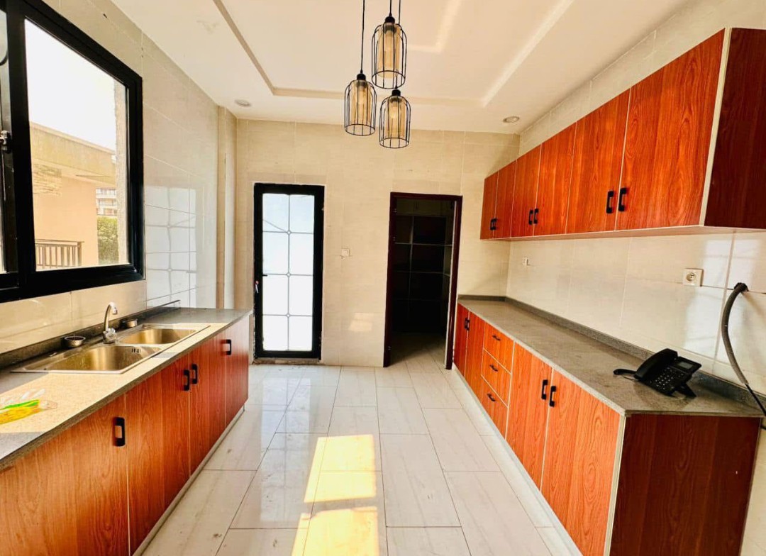 dotée: 4 chambres spacieuse lumineuse salon spacieux lumineux un Bureau, cuisine meublé et équipé magasin