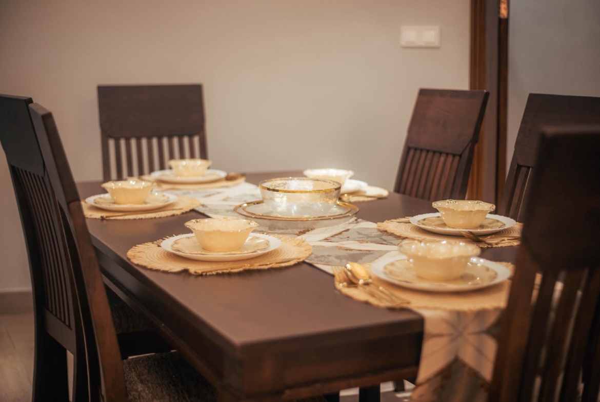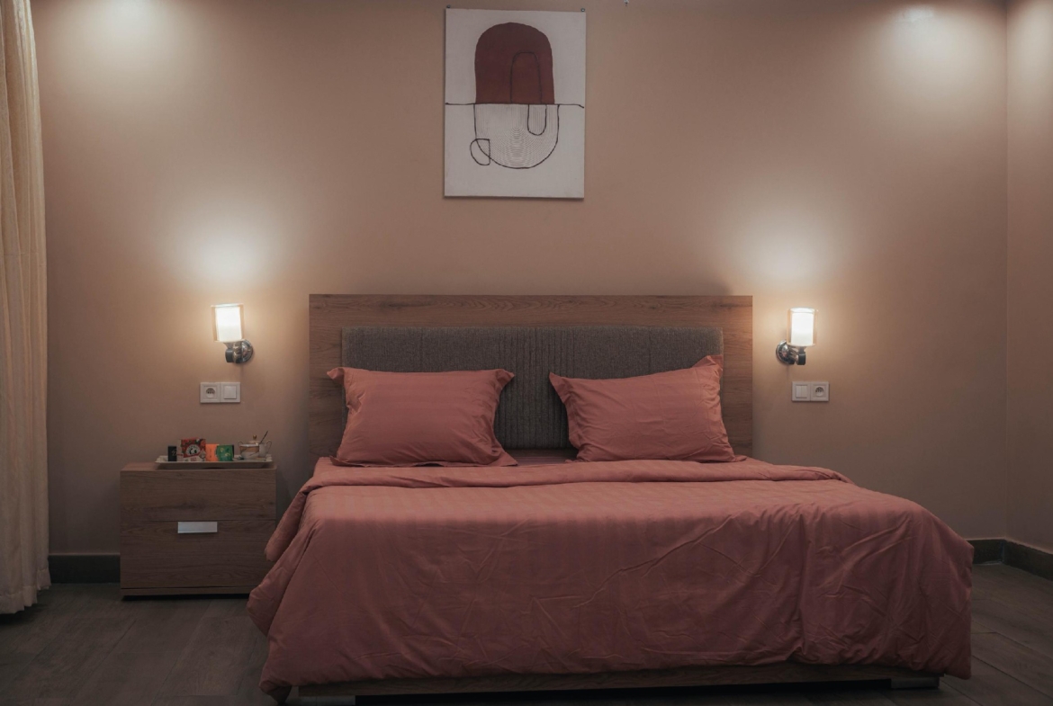 dotée de: 3 chambres spacieuse lumineuse salon spacieux lumineux salle à manger cuisine équipé magasin, 3 salle de bains toilette de visiteurs, climatisé partout, 2 vaste balcons ,parking, sécurité H24/